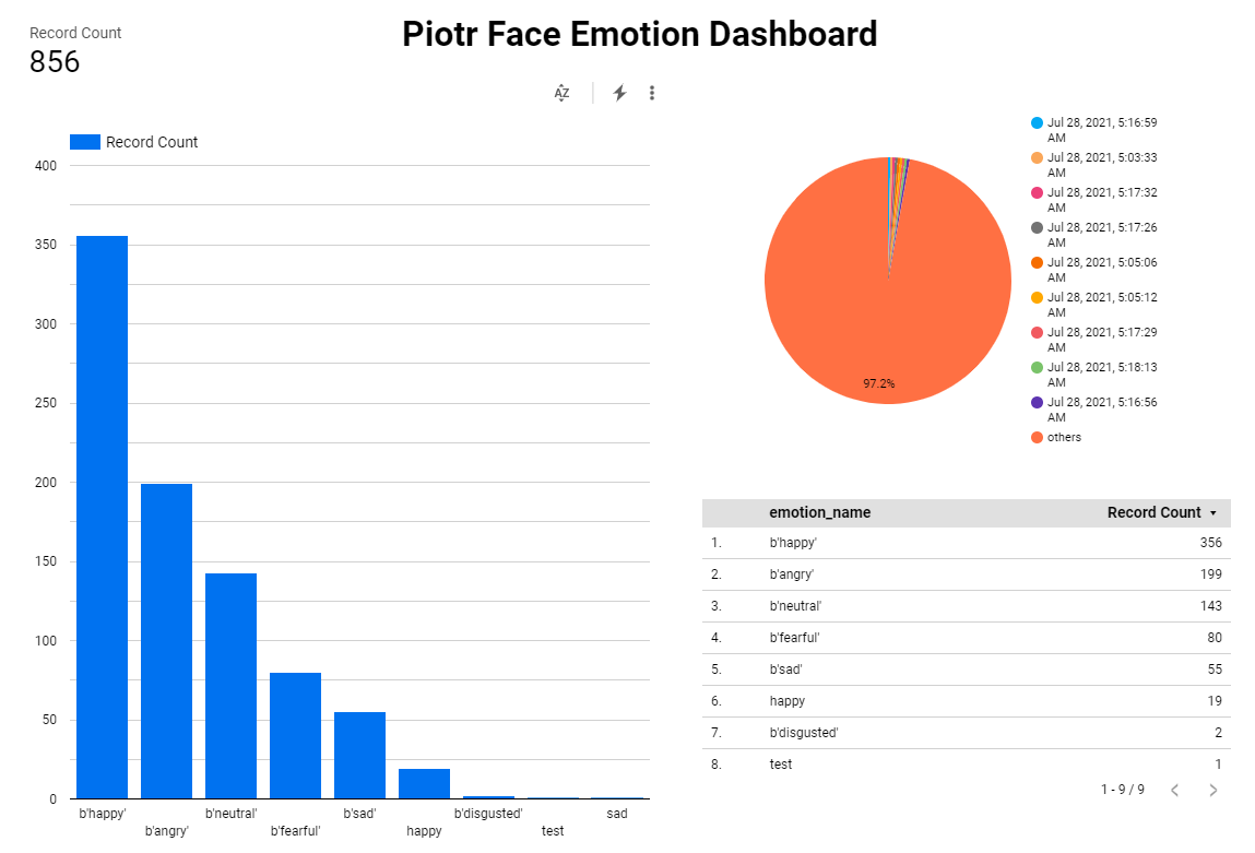 The dashboard pulls the data from bigquery that is used by MQTT Fowarder to store emotions along with a timestamp.